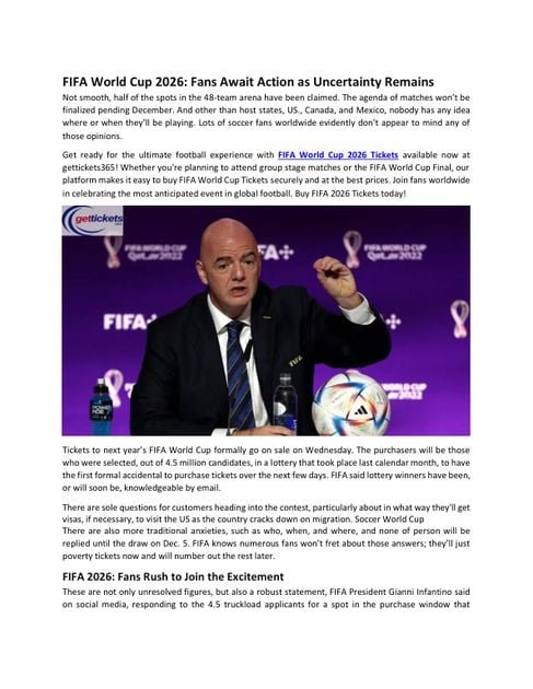Bibliobazar Free BooksFIFA World Cup Tickets: Uncertainty for FIFA, soccer fans over Trump’s America First policies for World Cup 2026