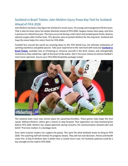 Bibliobazar Free BooksScotland vs Brazil Tickets: John McGinn Injury Poses Key Test for Scotland Ahead of FIFA 2026