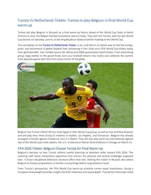 Bibliobazar Free BooksTunisia Vs Netherlands Tickets: Tunisia to Test World Cup Readiness Against Belgium in Brussels Friendly