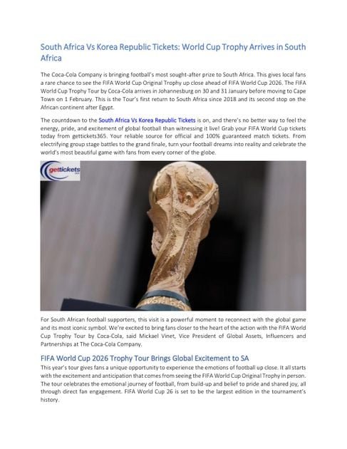 Bibliobazar Free BooksSouth Africa Vs Korea Republic Ticktes: World Cup Trophy Arrives in South Africa