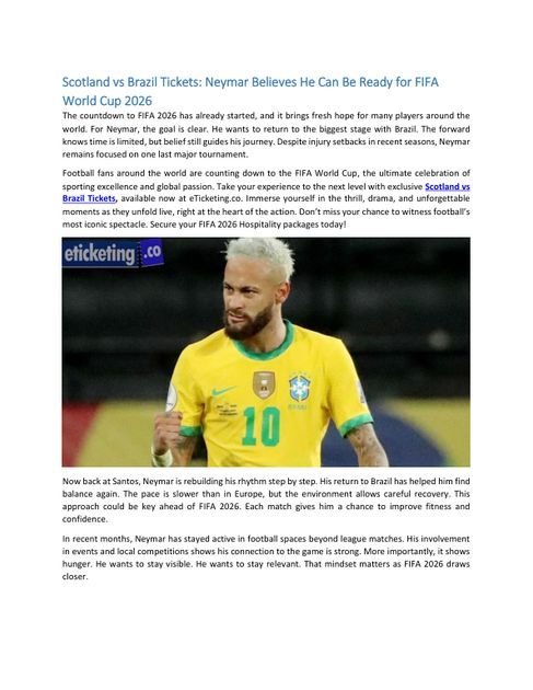 Bibliobazar Free BooksScotland vs Brazil Tickets: Neymar Believes He Can Be Ready for FIFA World Cup 2026
