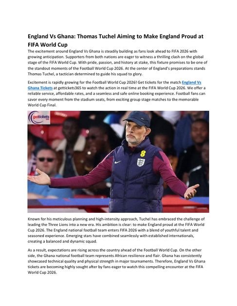 Bibliobazar Free BooksEngland vs Croatia Tickets: Thomas Tuchel names key factors for his FIFA 2026 squad selection