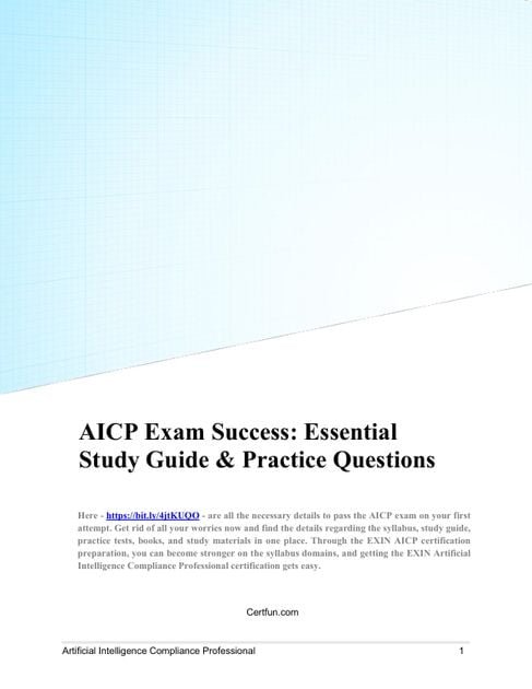 Here – https://bit.ly/4jtKUQO – are all the necessary details to pass the AICP exam on your first attempt. Get rid of all your worries now and find the details regarding the syllabus, study guide, practice tests, books, and study materials in one place. Through the EXIN AICP certification preparation, you can become stronger on the syllabus domains, and getting the EXIN Artificial Intelligence Compliance Professional certification gets easy.