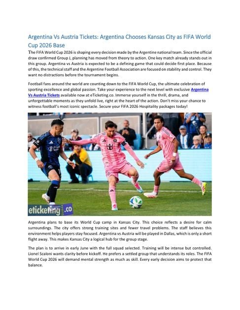 Football fans around the world are counting down to the FIFA World Cup. The ultimate celebration of sporting excellence and global passion. Take your experience to the next level with exclusive Argentina Vs Austria Tickets available now at eTicketing.co. Immerse yourself in the thrill, drama, and unforgettable moments as they unfold live, right at the heart of the action. Don’t miss your chance to witness football’s most iconic spectacle. Secure your FIFA 2026 Hospitality packages today!