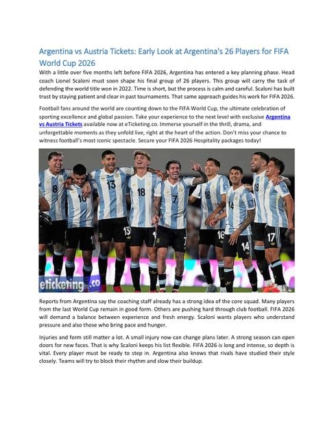 Argentina vs Austria Tickets: Early Look at Argentina’s 26 Players for FIFA World Cup 2026 – Free PDF Download – Eticketingco – 4 Pages – Year: 2026 – sports
