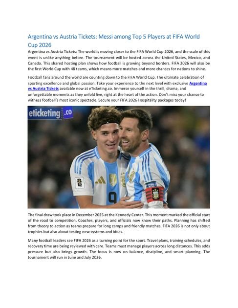 Argentina vs Austria Tickets: Messi among Top 5 Players at FIFA World Cup 2026 – Free PDF Download – 5 Pages – Year: 2025 – sports