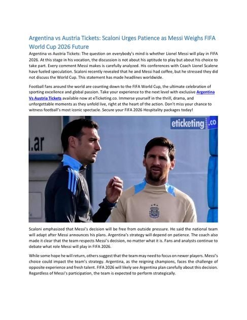 Argentina vs Austria Tickets: Scaloni Urges Patience as Messi Weighs FIFA World Cup 2026… – Free PDF Download – Eticketingco – 4 Pages – Year: 2026