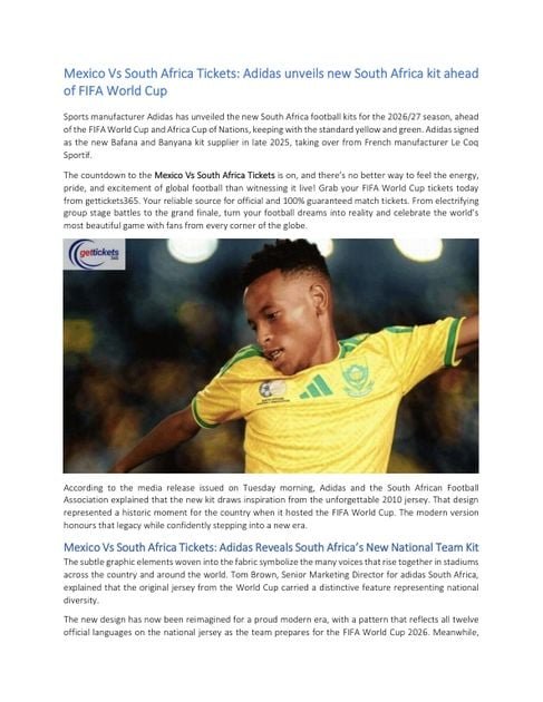 Bibliobazar Free BooksMexico Vs South Africa Tickets: Adidas unveils new South Africa kit ahead of FIFA World Cup