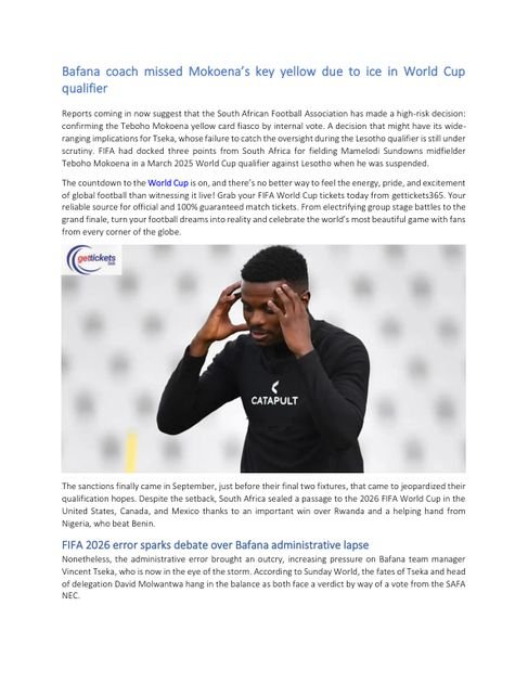 Bafana coach missed Mokoena’s key yellow due to ice in World Cup qualifier – Free PDF Download – 5 Pages – Year: 2025 – sports – Read Online @ PDF Room