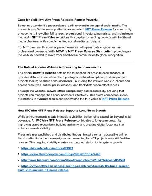 Summary of Build Awareness Quickly Using IMCWire NFT Press Release