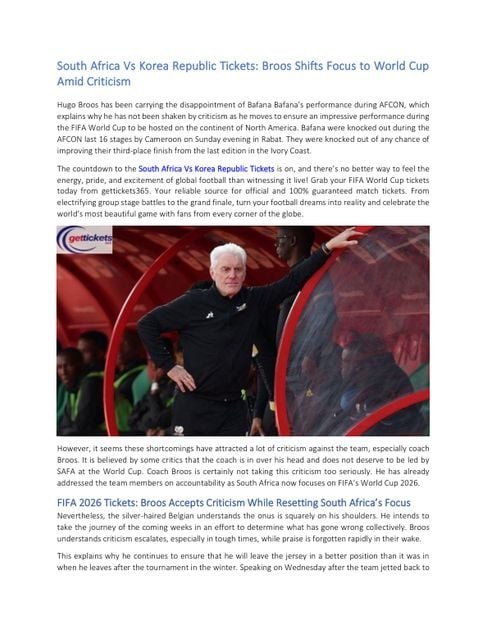 Bibliobazar Free BooksSouth Africa Vs Korea Republic Tickets: Broos Shifts Focus to World Cup Amid Criticism