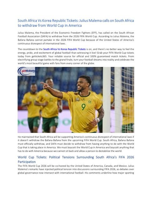 Bibliobazar Free BooksSouth Africa Vs Korea Republic Tickets: Julius Malema calls on South Africa to Think about World Cup