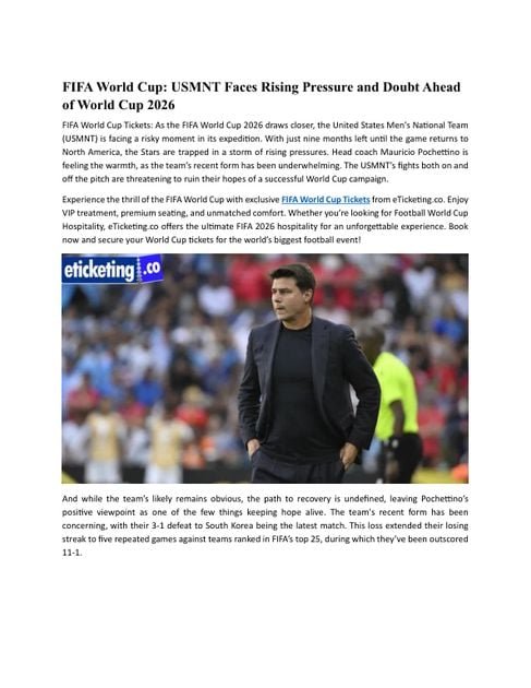 Bibliobazar Free BooksFIFA 2026 Tickets: Pulisic, Robinson, and Zendejas Doubtful for US Friendly against Ecuador