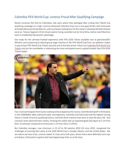 Colombia FIFA World Cup: Lorenzo Proud After Qualifying Campaign – Free PDF Download – Nasir Kamal – 5 Pages – Year: 2025 – sports