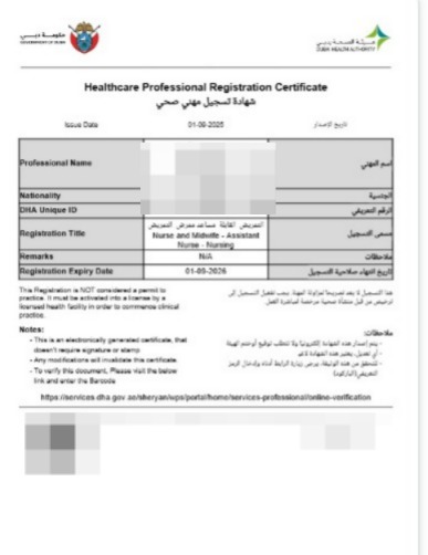Your employer will later use this eligibility letter to activate your professional license, enabling you to legally practice in Dubai.
