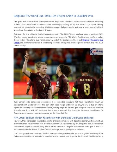 Summary of Belgium FIFA World Cup: Doku, De Bruyne Shine in Qualifier Win