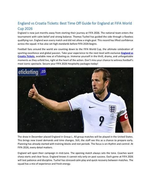 England vs Croatia Tickets: Best Time Off Guide for England at FIFA World Cup 2026 – Free PDF Download – Eticketingco – 4 Pages – Year: 2026 – sports