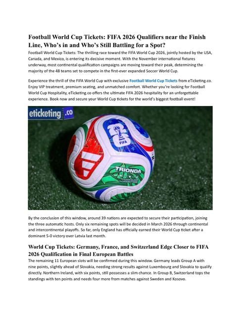 Football World Cup Tickets: FIFA 2026 Qualifiers near the Finish Line, Who’s in and Who’s Still Battling for a Spot?