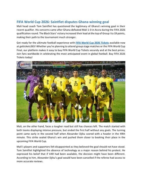 FIFA World Cup 2026: Ghana Goal vs Mali Questioned by Coach Saintfiet – Free PDF Download – Anwaar Hussain – 5 Pages – Year: 2025 – Sports Tickets