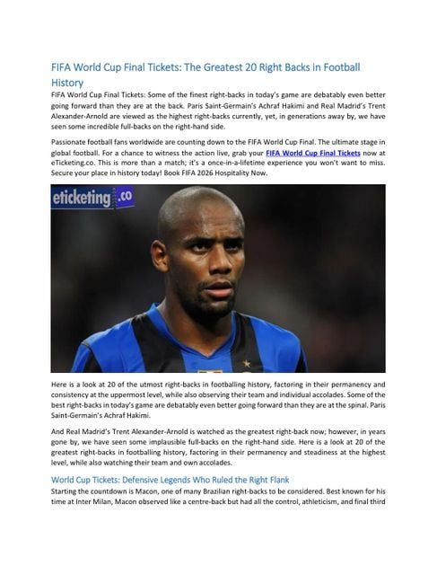 FIFA World Cup Final Tickets: The Greatest 20 Right Backs in Football History – Free PDF Download – 4 Pages – Year: 2025 – Sports Tickets