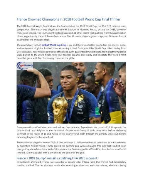 France Crowned Champions in 2018 Football World Cup… (PDF)