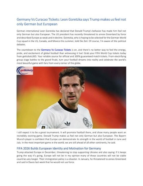 Germany Vs Curacao Tickets: Leon Goretzka says Trump makes us feel not only German but… – Free PDF Download – 5 Pages – Year: 2026 – sports
