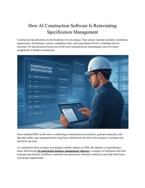 Construction specifications are the backbone of every project. They dictate material standards, installation requirements, performance criteria, compliance rules, and expectations for how a building must be executed. This guide explores how AI is reinventing construction specifications-and why modern builders are rapidly replacing manual methods with advanced construction specification software and construction specification management software. Check out this blog to learn how AI construction software is reinventing specification management.