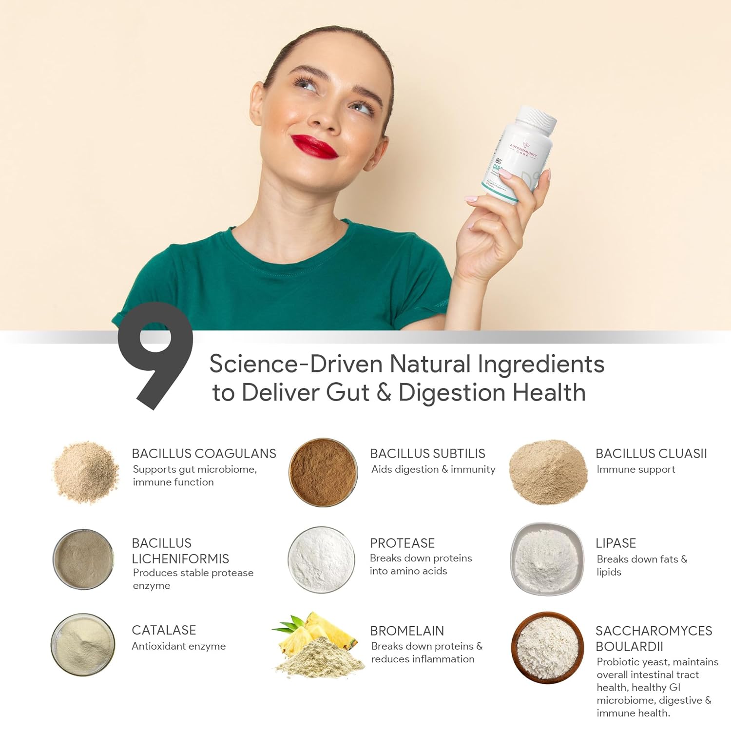 Triple-Action Formula: Combines probiotics, digestive enzymes, and gut-soothing bromelain to support balanced digestion and gut microbiome health.
