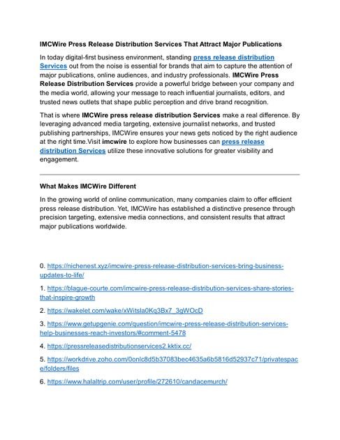 Summary of IMCWire Press Release Distribution Services Empower Business Growth Through Exposure