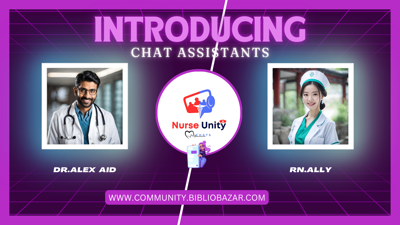 In the fast-evolving world of healthcare, accurate information and timely assistance are crucial. At Nurse Unity Chats, part of the Bibliobazar community, we are proud to introduce Dr. Alex Aid and RN Ally, two AI-powered chat assistants designed to provide around-the-clock support for all your medical queries. Whether you’re seeking clarification on medical concepts, advice on healthcare practices, or general medical knowledge, these virtual assistants are available 24/7 to ensure you get the help you need.