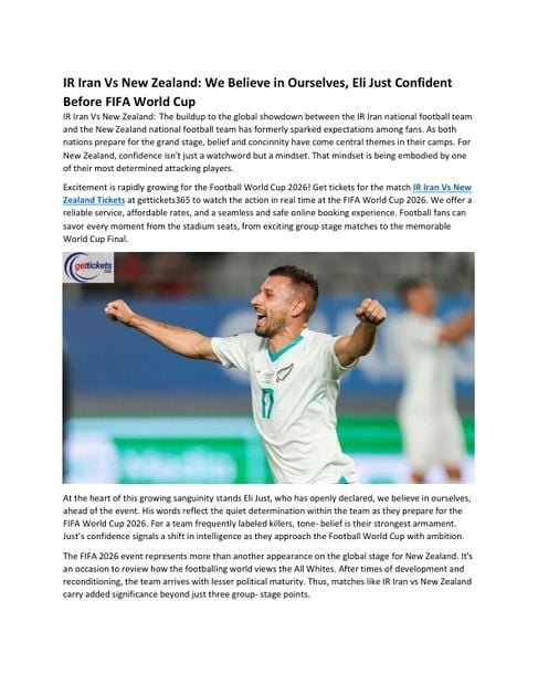 Eli Just’s trip to this Football World Cup 2026 moment has been shaped by continuity and steady growth. Having developed his craft both domestically and abroad, he has progressed into a protean attacking option. His speed on the sides and ability to track back defensively add balance to the side, making him an essential figure in New Zealand’s evolving system. Fans eager to witness his performance are already looking for New Zealand Vs Egypt Tickets, anticipating a memorable display on the global stage.
