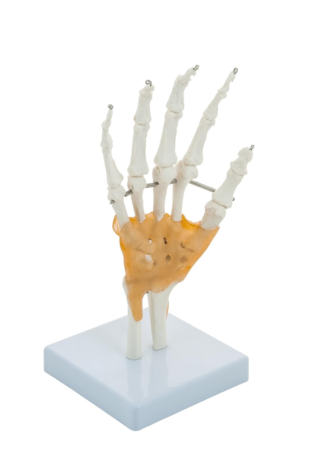 This Skeletal Hand model shows, wrist and hand bones including carpals, radius, ulnar, metacarpals and phalanges