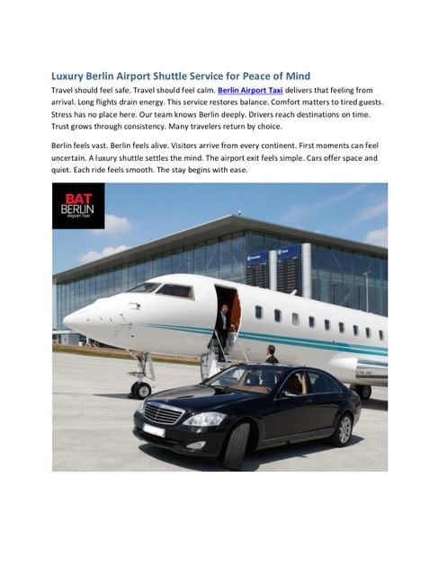 Luxury Berlin Airport Shuttle Service for Families and Business TravelersDifferent journeys need different care. Families carry bags and hopes. Business travelers guard their focus. Berlin Airport Taxi supports both paths. Vehicles look fresh. Cabins feel clean. Drivers arrive on schedule. Help comes with respect. The ride stays peaceful.
