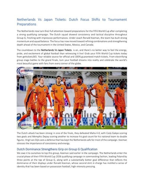 Netherlands Vs Japan Tickets: Dutch Focus Shifts to Tournament Preparations – Free PDF Download – 5 Pages – Year: 2026 – sports – Read Online @ PDF Room