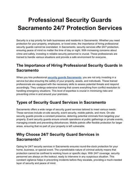 Direct Guard Services leads the way among security companies Sacramento, offering expert protection with a personal touch. We understand that every site has unique risks, which is why our guards are trained to adapt and act with precision. Whether you need event coverage, mobile patrols, or permanent on-site officers, we ensure continuous safety and rapid response. Businesses and residents across Sacramento rely on us for trustworthy, efficient, and cost-effective security solutions. Direct Guard Services—your dependable partner for comprehensive protection.
