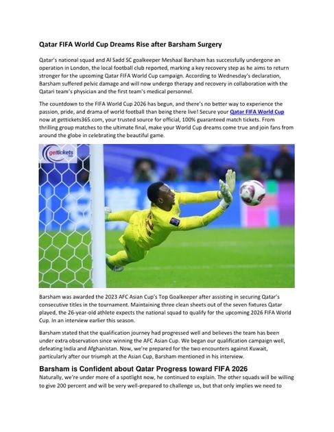 Qatar FIFA World Cup Dreams Rise after Barsham Surgery (PDF)