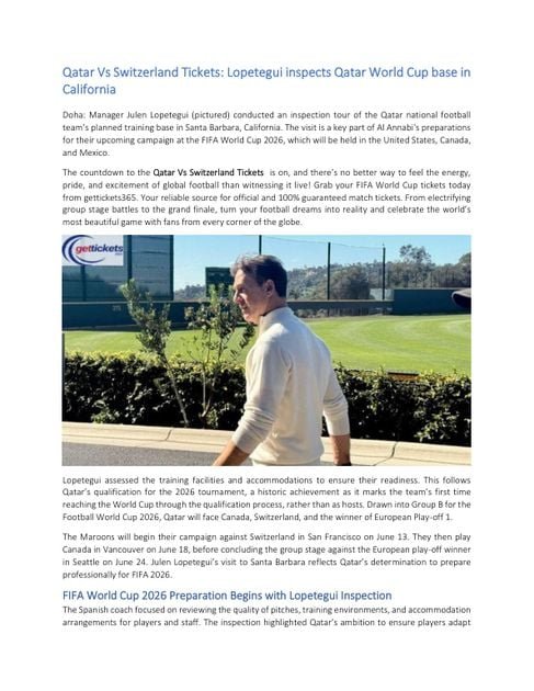 Qatar Vs Switzerland Tickets Lopetegui inspects Qatar World Cup base in California – Free PDF Download – 5 Pages – Year: 2026 – sports