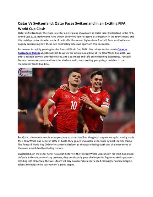 You can buy Qatar vs Switzerland tickets online through trusted platforms like gettickets365 for a safe, affordable, and seamless booking experience.