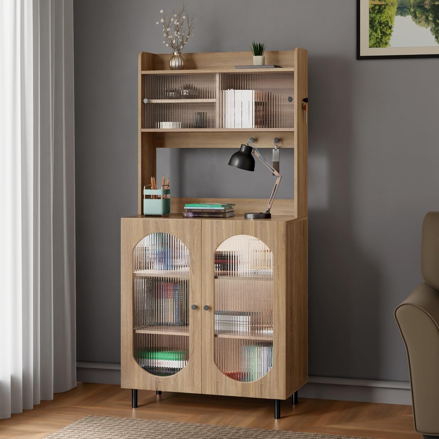 ACRYLIC FLUTED SHUTTERS: The doors(shutters) of the cabinet have beautiful acrylic panels and are sturdy, unlike fragile glass doors.