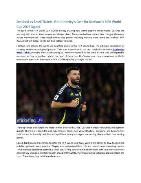 Scotland vs Brazil Tickets: Grant Hanley’s Case for Scotland’s FIFA World Cup 2026 Squad – Free PDF Download – Eticketingco – 5 Pages – Year: 2026 – sports