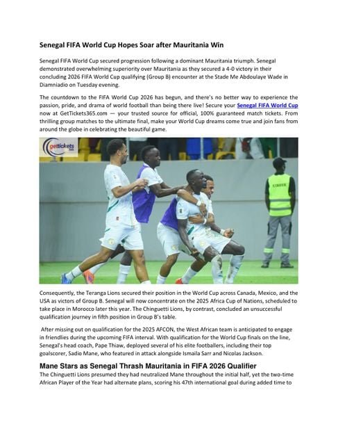 Senegal FIFA World Cup Hopes Soar after Mauritania Win (PDF)