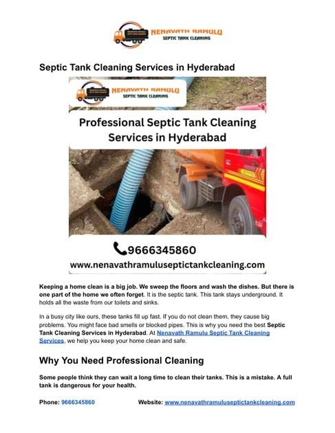 In a busy city like ours, these tanks fill up fast. If you do not clean them, they cause big problems. You might face bad smells or blocked pipes. This is why you need the best Septic Tank Cleaning Services in Hyderabad. At Nenavath Ramulu Septic Tank Cleaning Services, we help you keep your home clean and safe.