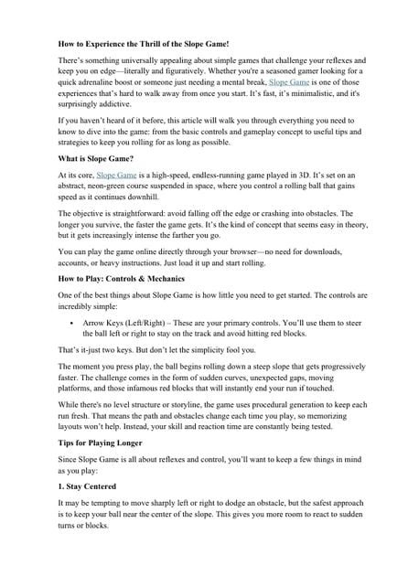 There’s something universally appealing about simple games that challenge your reflexes and keep you on edge—literally and figuratively. Whether you’re a seasoned gamer looking for a quick adrenaline boost or someone just needing a mental break, Slope Game is one of those experiences that’s hard to walk away from once you start. It’s fast, it’s minimalistic, and it’s surprisingly addictive.