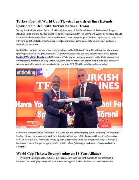 Turkey Football World Cup Tickets: Turkish Airlines Extends Sponsorship Deal with Turkish National Teams