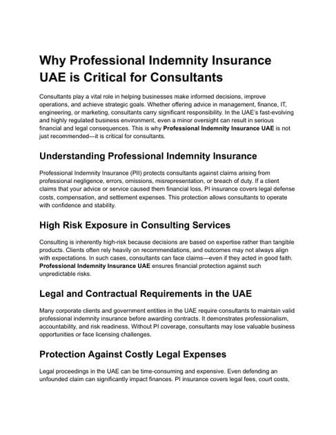 Why Professional Indemnity Insurance UAE is Critical for Consultants – Free PDF Download – 2 Pages – Year: 2025 – customer service